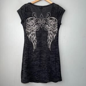 Vanity Tee Size M Black Burnout Knit Y2K Emo Grunge Moto Shirt Angel Wings Cross