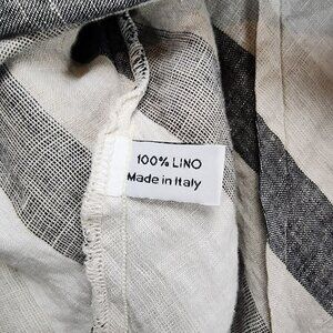 Vanity Top Womens Small Gray Striped 100% Linen V Neck Sleeveless Tank
