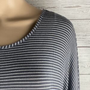 Vanity Tunic Shirt Gray White Striped Soft Rayon Blend Dolman Sleeve Top