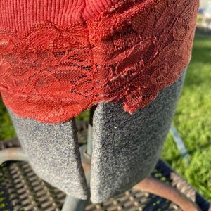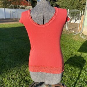 Has some tearing at the lace hem but it still fits great. Super soft fabric. This is the quintessential Y2K Lace bottom shirt we all wore!