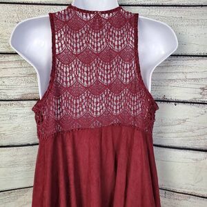 Vanity Women’s Sleeveless Vest Maroon Crochet Lace Suede Look Size M