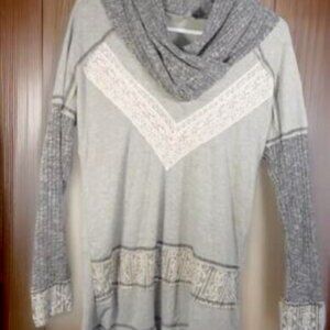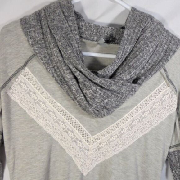 Vanity Womens Small Sweater Sweatshirt Cowl Wrap Neckline Gray White Lace Dressy