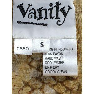 Vanity Women's Snake Sequin Blouse Python Top S mall Collar 3/4 Sleeve Which may be cuffed Hand wash cool, drip dry 100% rayon Bust width side to side 20” Length shoulder seam to hem 25” Very Very good condition. Snake button blouse S Great with Jeans.