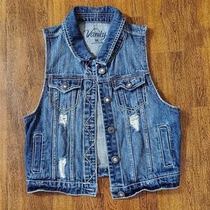 Vanity Womens Sz Medium Denim Vest Distressed Bejeweled