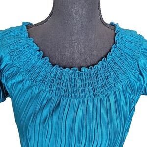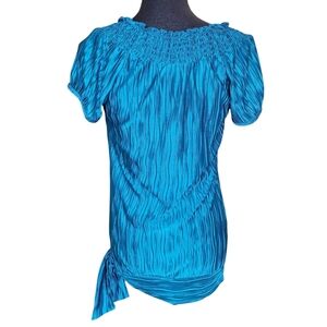 Vanity | Women's Y2K Ruched Satin Teal Top - Size M