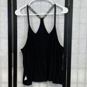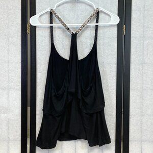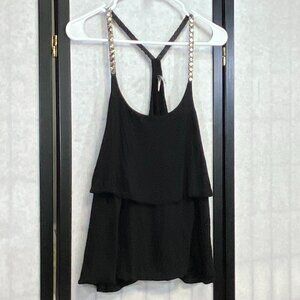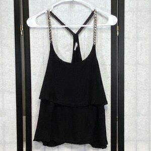 Vanity Y Back Beaded Strap Tiered Ruffled Layered Flowy Tank Top Black L