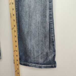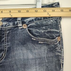 Vanity bootcut women's jeans, size 27 short, embroidered, medium wash blue