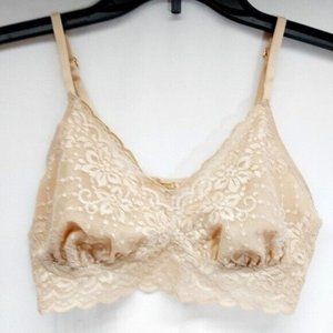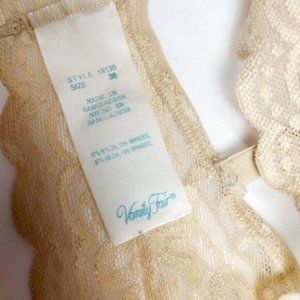 * Vanity fair size 36 bralette tan lace floral adjustable straps pull ov…