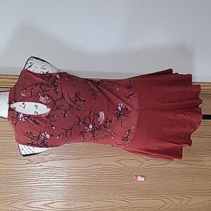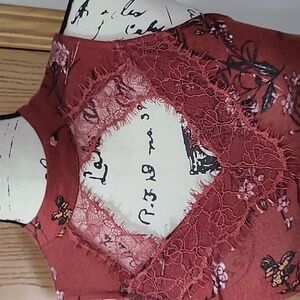 Vanity floral lace keyhole cutout flowy drop waist tank top