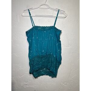Vanity lace trim sheer lined cami tank top womens small y2k fairy coquette ethereal 2000s festival