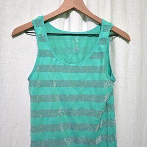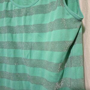 Vanity tank top. Mint green with lurex stripes. Scoop neckline.