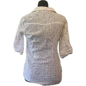 Vanity women’s small floral print button up 3/4 sleeve roll cuff blouse
