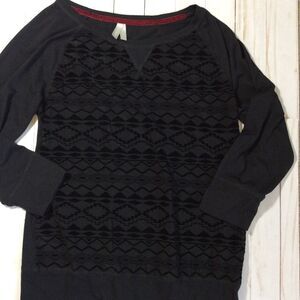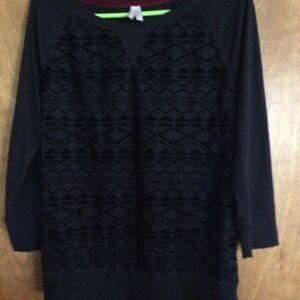Vanity Black Soft 3/4 sleeve top with texture detail Women's Size M measures pit to pit 19" Length 27"