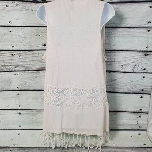 Vanity Cream Sleeveless Open Front Lace Fringe Vest Size L Boho Festival Cardiga