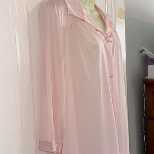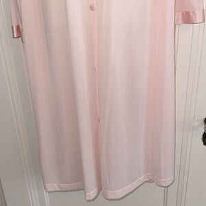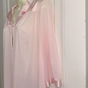 Vanity Fair Pink Nylon Short Robe with 3/4 sleeves & floral embellishments