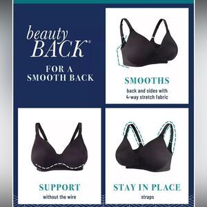 The Beauty Back® Full Figure Wireless style bra from Vanity Fair has lightly padded contoured cups that provide the coverage that you need for all day comfort. The double knit fabrice creates an all around smooth silhouette that reduces the appearance of back bulge and making this a perfect chose under your favorite T-shirts and silky blouses. Style #71380