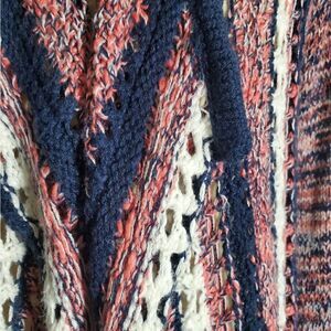 Multi-colored knit open sweater cardigan. Bottom fringed hem detail. Great knit details. Pre-owned in great condition. Please refer to pictures for best description and condition verification.