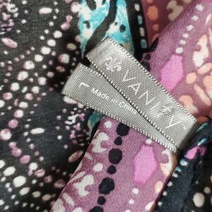 Color: Black with Multicolor Pink, Blue, and Purple Patterns