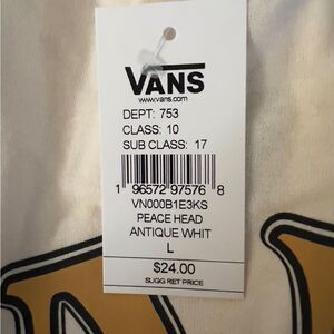 This listing is for a NWT's Vans 1966 Peace Head Short Sleeve Graphic Tee in size Large, in color antique white.