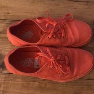 Cute bright orange colored vans! Little scuffed on the back, but definitely a statement piece for your wardrobe!