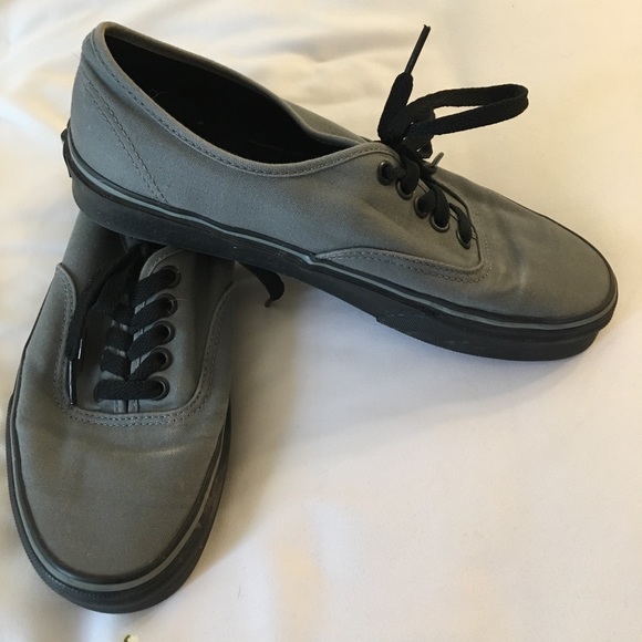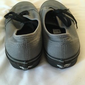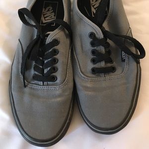 Vans grey and black shoes. Worn about 20 times. Some natural wear on the front and back. Inside vans logo is unworn. Bottom tread is unworn.
