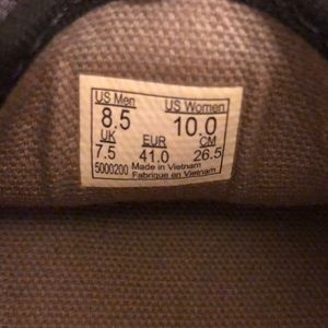Men’s 8.5 Women’s 10 Gray and Black * Picture shows little hole inner right shoe, along with little rips at heels inside shoes.