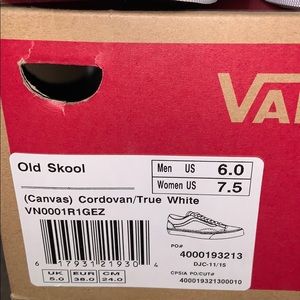 Never worn Still in the box Men’s 6/women’s 7.5 Burgundy and white
