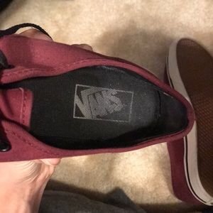 Used burgundy vans but still in good condition. Size 5.5 men and size 7 in women