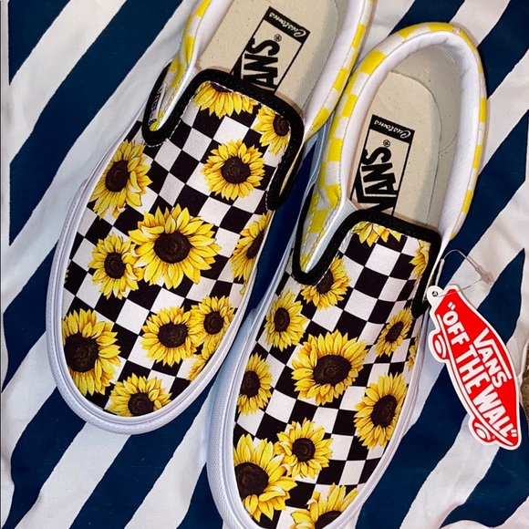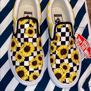 All white and checkerboard Sunflower Vans Custom made
