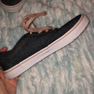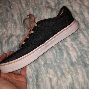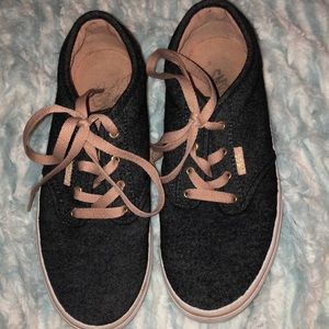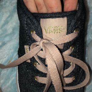 Super cute and comfortable vans. They are grey and pink with cute sparkly gold detailing. They are a size 5 but they fit me and I am around a 6-7. Very good condition only worn a few times except for a few minor scuff marks (hence the reduced price).