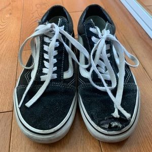 Can still be worn for things like skating or when you’re working on something dirty. Hole on the right foot.