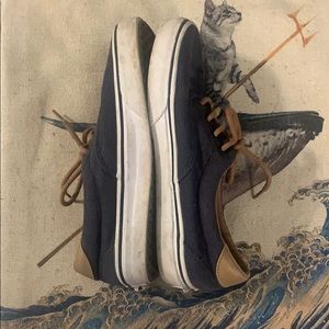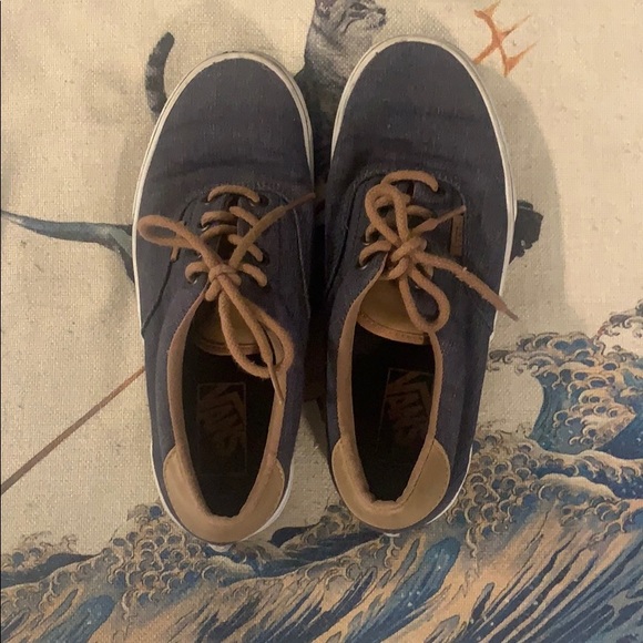 Denim colored vans with brown details and laces. Worn a handful of times but still in GREAT shape.