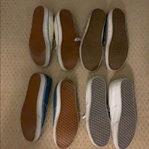 4 pairs of Van’s in very good condition. White w navy stripe, grey, navy and pure white no stripe.