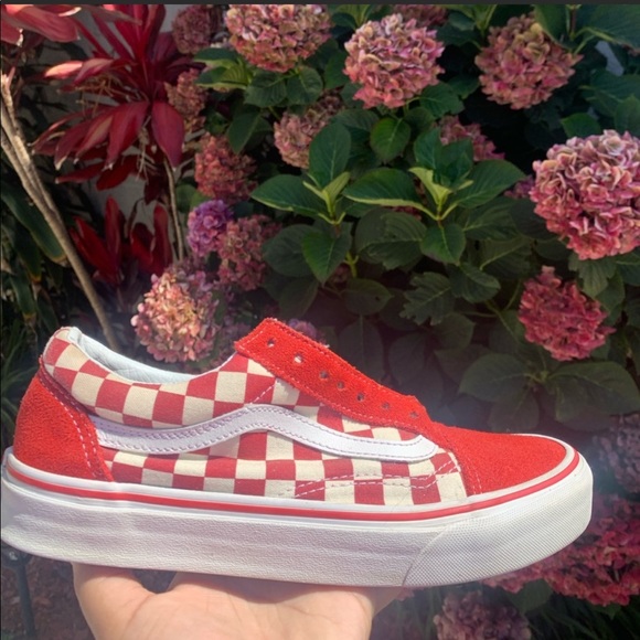 Red checkered old skool vans