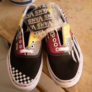 Mens size 6.5 womens size 8 brand new comes with black, white, yellow and black and white stripped laces.