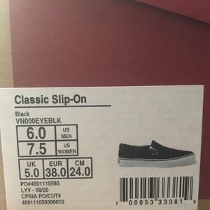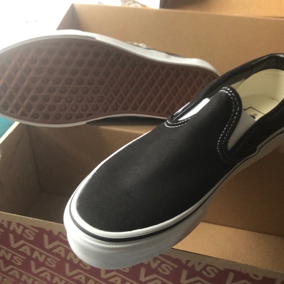 pair of black and white vans classic slip ons