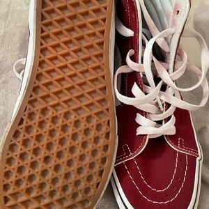 Vans sneakers the ink ran a little on the inside and on the laces. Otherwise In great condition. Super comfortable condition. Have hundreds of sneakers so unloading some from my collection. The sneakers are BURGUNDY NOT RED!