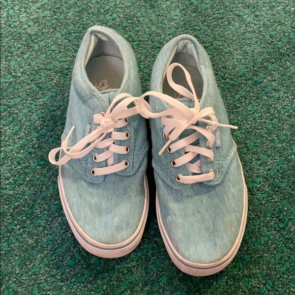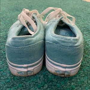 Light Aqua Blue vans with white shoelaces. Gently worn.