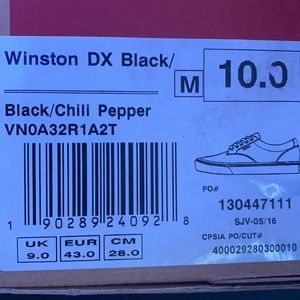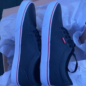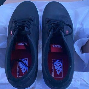 Brand new with tags! Super clean black vans with white soles; red stripe. US size 10