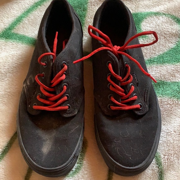 They are a little dirty but I am going to clean them before they would be given to you. They are very comfortable. They’re not broken in or anything because I have never worn them. They’re just dirty from when I moved. The red shoelaces are not the original ones my puppy got to the original ones. They are still very nice. message me if you would like to see more pictures.