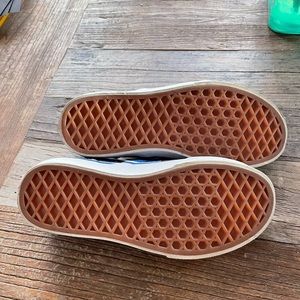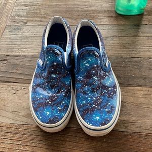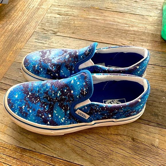 Youth size 2.5. Excellent condition, worn twice. These are so cool, they even glow in the dark! We've just realized my kid isn't a Vans kid!