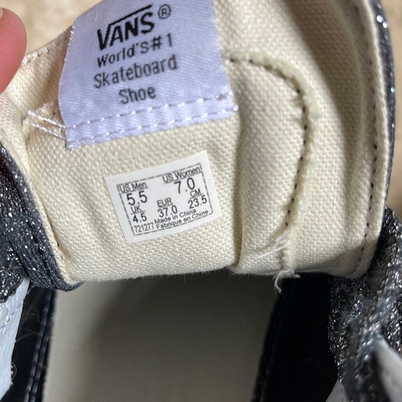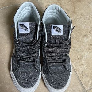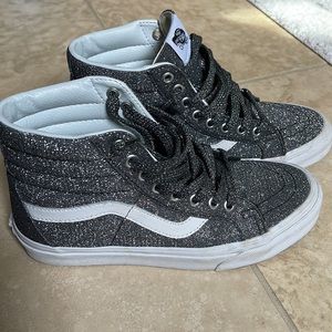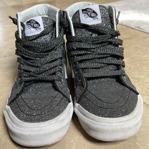 Extremely good conditions. Sparkly high top Vans. Silver and white. Barely and gently used
