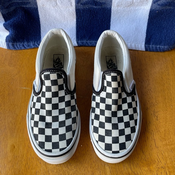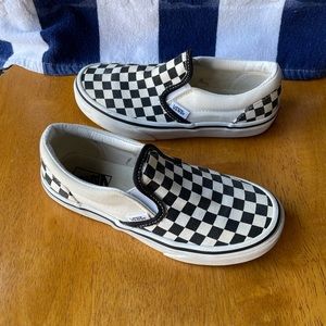 Black and white checkered Vans for kids. These are in great condition.