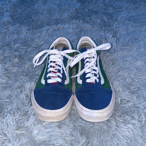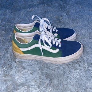 Multi-color vans, barely worn, in good condition, flaws shown in pictures.