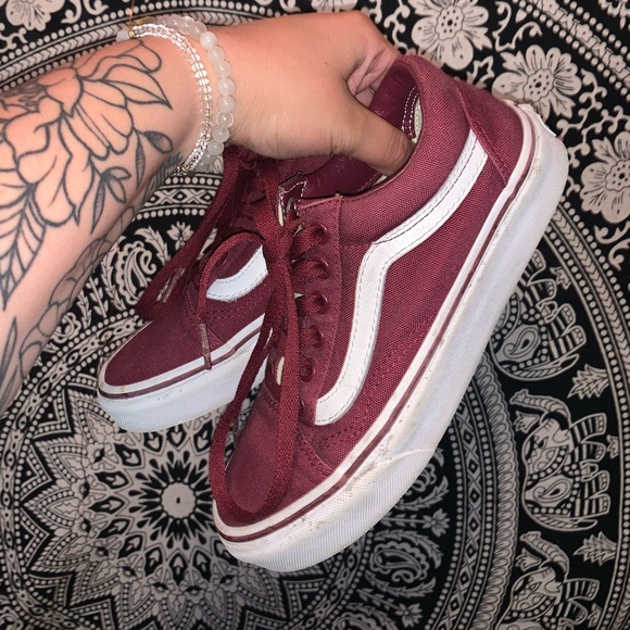 Burgundy vans mens size 4 womens 5.5 unisex . Worn a couple times minor flaws still in great condition great for an everyday shoe and perfect for fall