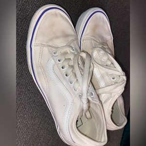 These are brand new without a box, accidentally washed them so their a bit discolored. They are not fully white, they are a creamy white. Has also a tear thats shown in photos. Size 8 in women, 6.5 in mens.