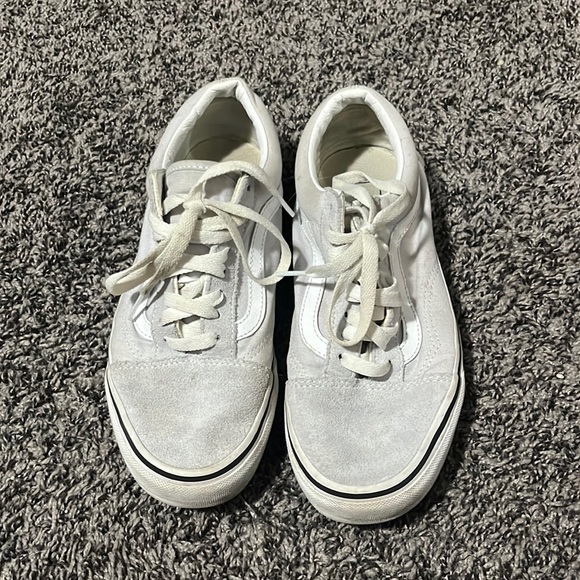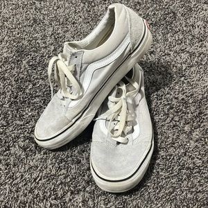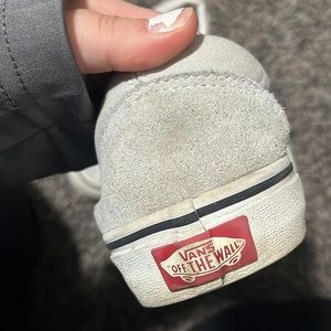 Ashy blue women’s vans, size 8 they’re a little dirty but if you threw them in the wash they would be fine.