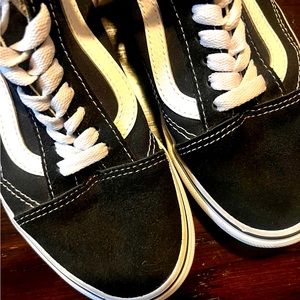Vans for sale , excellent condition , good for kids going back to school soon , stylish and very trendy , black & white . Mens 6.5 / women’s 8.0