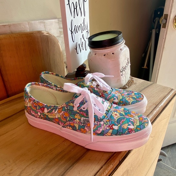Vans, cute colorful mushroom print, excellent condition, women’s 6.5