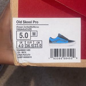 These are the Old Skool Pro Vans in a size men’s 5. For women’s it’s a size 7. New with the box !